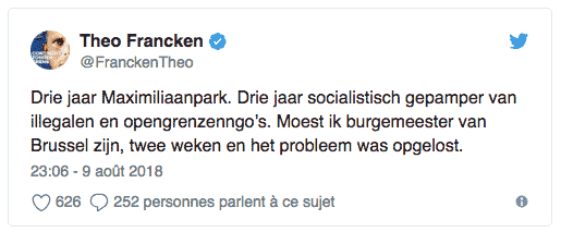 Ранее Франкен написал в своем твиттер, что ему бы хватило двух недель полномочий мэра Брюсселя, чтобы навести порядок в парке Максимилиан.