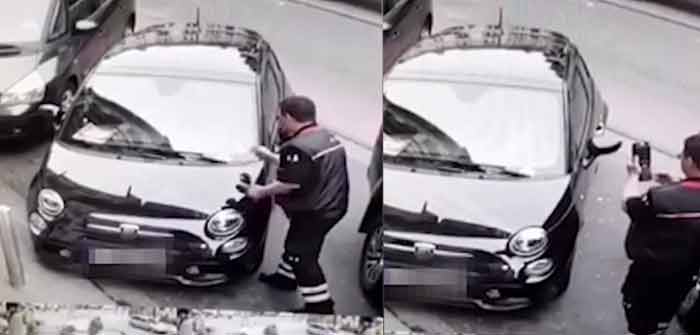 Контроллер из Sint-Joost-ten-Node попал на камеру видеонаблюдения за странным поведением: сначала он выписал штраф нарушителю и сфотографирован транспорт, но затем забрал квитанцию с собой.